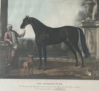 Junto a los árabes Darley y Godolphin, otro de los grandes padres del actual turf fue el turco Byerley, El caballo fue montado por el Capitán Robert Byerley durante la campaña militar en Irlanda (1689-1690). Tras la contienda, el caballo fue llevado a Inglaterra, donde se convirtió en uno de los primeros sementales orientales en influir decisivamente en la cría de los caballos pura sangre. El grabado que no gané, fue el premio del único Concurso Completo de Equitación llevado a cabo en el Campo de Maniobras San Gregorio de la Academia General Militar de Zaragoza, en la primavera de 1900. Lo ganó mi amigo el entonces capitán, hoy coronel José María Sánchez-Feijóo López. Después de muchos años, y en la víspera de su marcha de Zaragoza, para estrenar su nueva casa en Santander, me lo regaló como recuerdo. Gracias Tato.