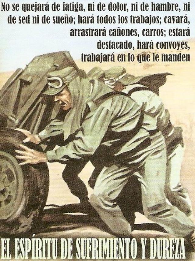 ‹‹No se quejará de fatiga, ni de dolor, ni de hambre, ni de sed, ni de sueño; hará todos los trabajos; cavará, arrastrará cañones, carros; estará destacado, hará convoyes, trabajará en lo que le manden››