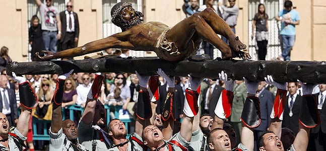 Pesan mucho los muertos, sobre las espaldas, pesa mucho la vida de tantos compañeros muertos. Levantan los legionarios sus brazos, al Cielo, con su Cristo valiente. Aquel que ha sentido una vez en sus manos temblar la