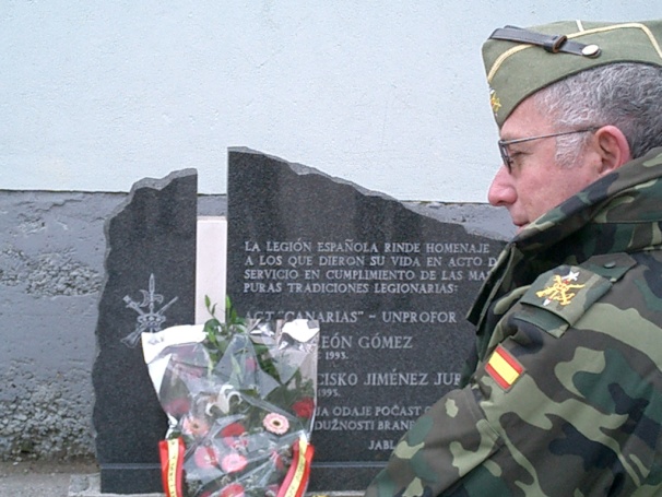 No iba a pasar mucho tiempo hasta que de nuevo otro jóven Teniente dejase su valor y heroismo marcado para siempre en las tierras de Bosnia y Herzegovina. Trasladaba plasma sanguíneo y medicinas, es decir la vida, cuando una granada perdida de ese enemigo invisible e inexistente para la política, acabó con su vida. Era el Teniente de la Legión Arturo Muñoz Castellano, el primer caído en el combate por la paz y cuyo nombre preside la Plaza de España en Mostar junto a sus 22 compañeros que dieron allí su vida. De nuevo el deber, de nuevo “Cumplirá su deber, obedecerá hasta morir”.