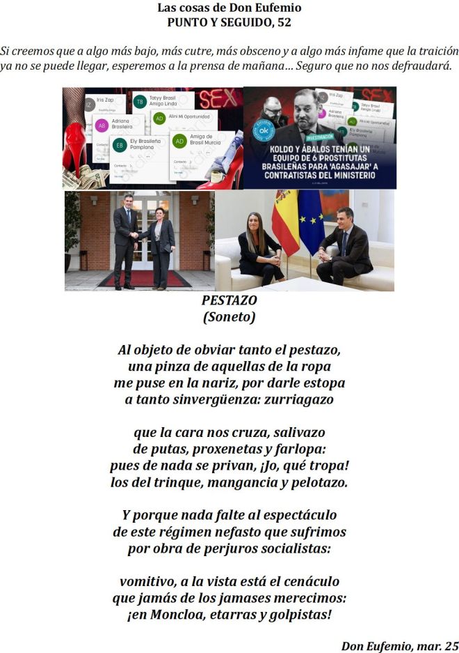 El Partido Socialista Obrero Español conocido por sus siglas PSOE está dando la vuelta al calcetín de la convivencia. Quiere guerra y guerra tendrá. Los mismos que hicieron una cosa hacen ahora la contraria. Ya no les sirve la Transición. «El poder tiene recursos para todo…, ofrece muchas posibilidades. Todo el secreto está en saber manejar los dispositivos legales».