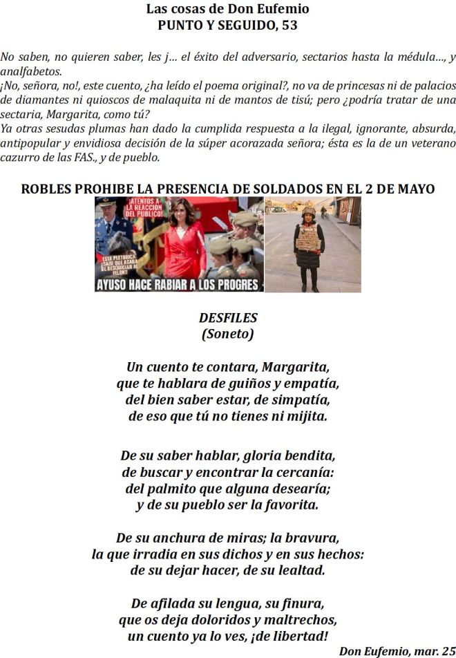 Canalejas replicaba: — ¡Entonces callen tantos himnos de gloria al ejército, cantadle menos, pero respetadle más!
