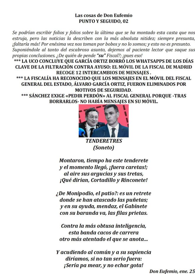 Dudo de complejas maniobras y mi experiencia dice que cuando buscas las razones de algún hecho ocurrido, lo más sencillo es lo que nunca se contempla y suele ser lo que ha sucedido. Una serie de errores, esperemos que ninguno mal intencionado, la rutina del día a día y la irresponsabilidad de algunos, acabaron con la vida del Almirante. La ETA como ejecutora y el PC. con sede en Toulouse como informador y responsable intelectual. ¿Alguien más? Creo haberles proporcionado datos suficientes para meditar y obtener conclusiones. Se ve con claridad que también hubo culpables por omisión.