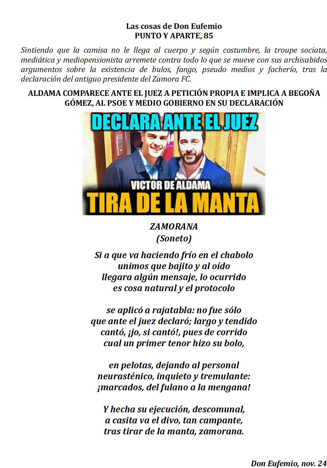 Usted, su mujer y su hermano David «alias Azagra», ¡Joder, qué tropa! que dijo Romanones. (El hermano de Sánchez utiliza el apodo artístico de David Azagra, de forma que no se le pueda relacionar con el líder del PSOE y jefe del Ejecutivo).