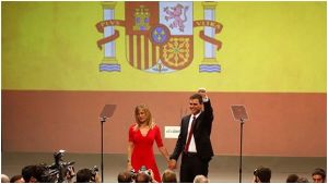 El pabellón de la Santa Liga que ondeó en La Real, la galera más grande construida hasta la fecha y buque insignia, nave capitana de Don Juan de Austria en Lepanto custodiado en el toledano Museo de Santa Cruz, o los pendones de la misma que Felipe II donó igualmente a la Primada de Toledo donde se conservan quedarían en algo así como un pin de solapa al lado de la bandera española que lucía tras la enamorada pareja en los mítines de campaña del señor de puño cerrado y brazo en alto en las últimas elecciones que le llevaron a La Moncloa de aquella manera; algo tendrá el agua cuando la bendicen y algo le contarían respecto de sus pliegues cuando en los mismos, imaginarios, se envolvió. Pliegues, los de un trapo en boca de su vicepresidente, a los que el PSOE había tenido alergia hasta la fecha.