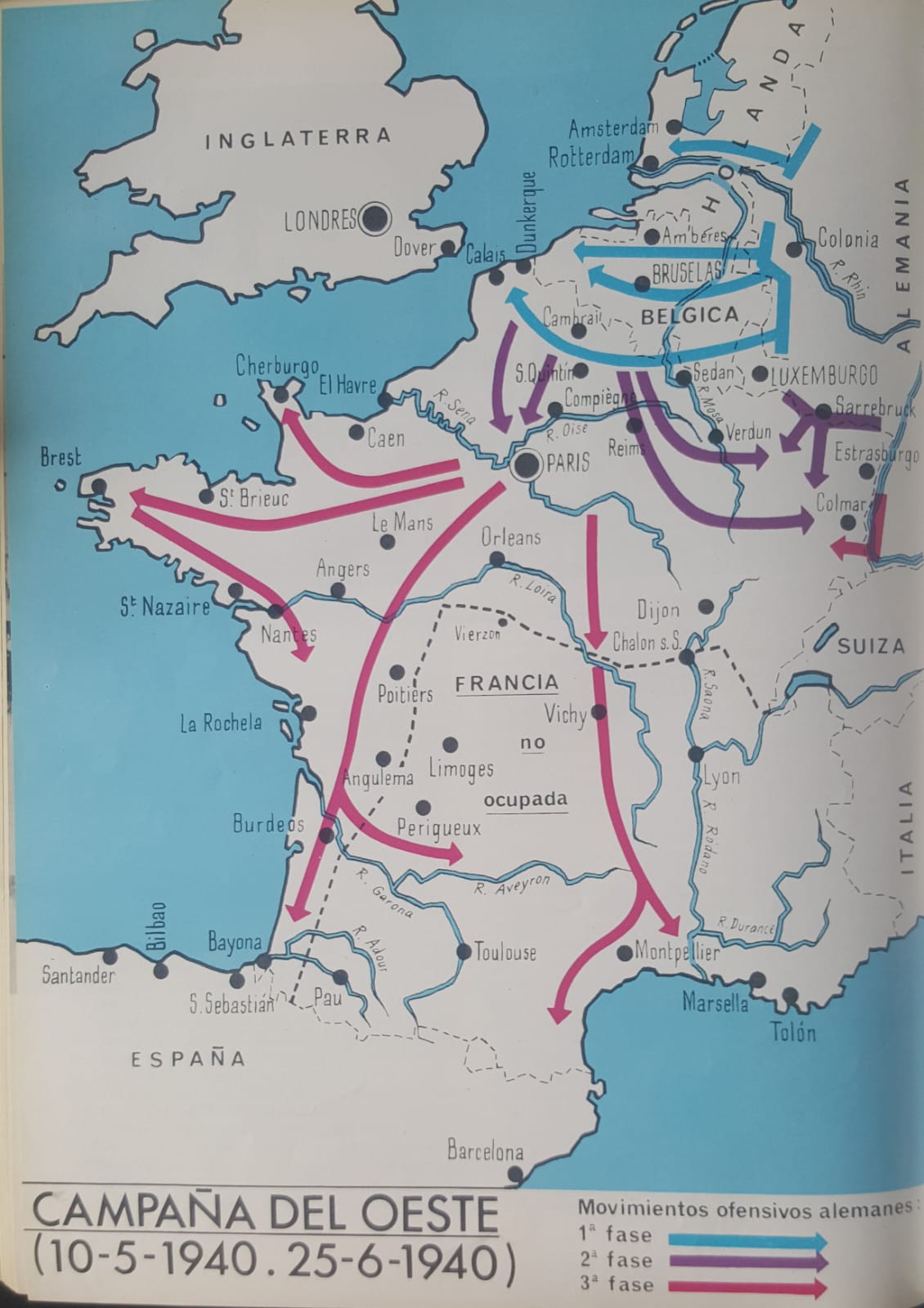 - el I Grupo de Ejércitos (GEI): frontera NW entre Mar del Norte y Río Mosa y entrada en Belgica y Holanda.