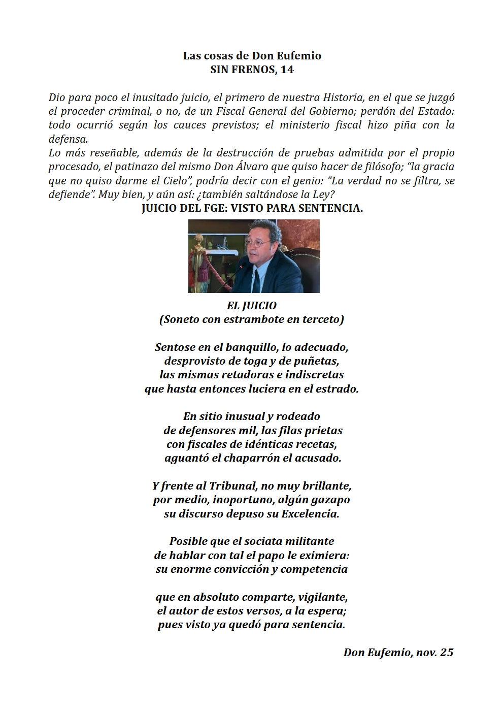 Al fin: ¿Quién cometió aquel magnicidio? De acuerdo con la documentación oficial, ¿qué sabemos?: nada. Es decir lo mismo que la Policía en aquellos momentos que asoció el asesinato con el juicio celebrado aquellos días: Proceso 1.001. Un país demasiado confiado al que el futuro se le iba de las manos: en Babia. Cundía el miedo, sin saber a qué.