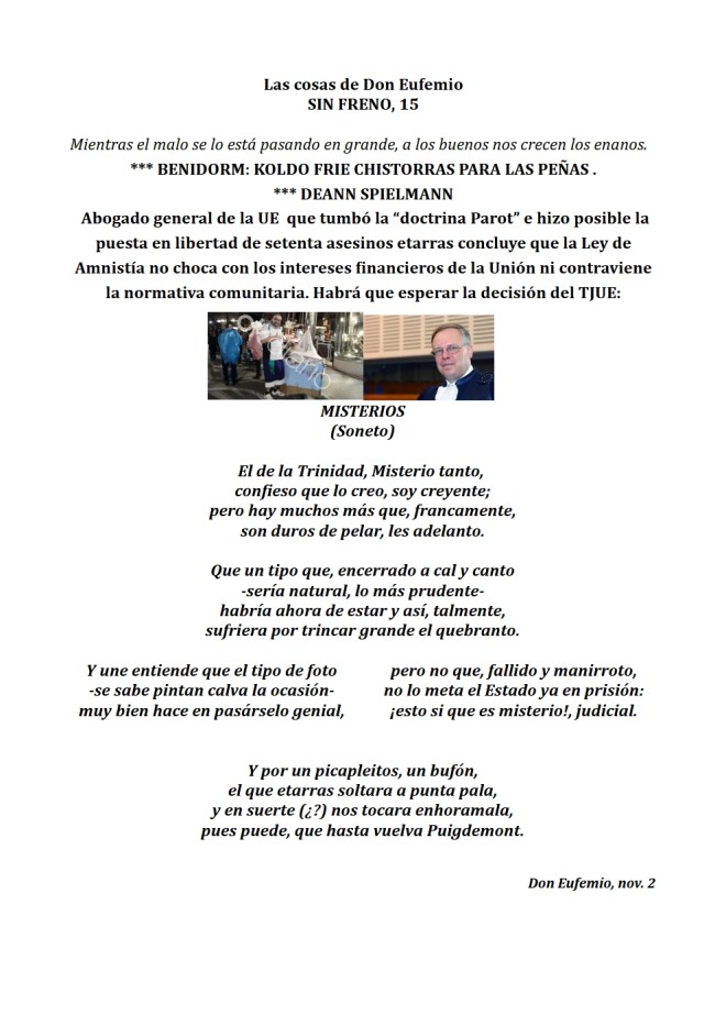 Por ahora, lo que nos queda, es el horror y el dolor de tanto asesinato cometido por la ETA, una herencia genética que algún día se borrará pero no mientras se permita su justificación o que los que los justifican ocupen un lugar en la política española.
