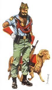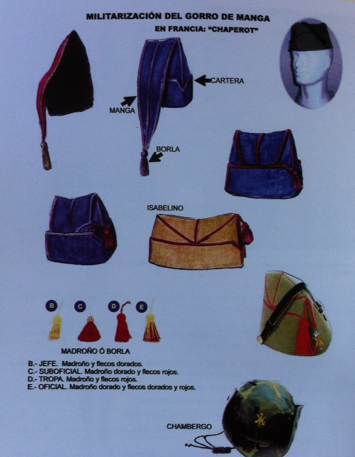 En el Diario oficial del 29 de Enero de 1920 y por Real Decreto se crea el Tercio de Extranjeros, primera denominación que tuvo la Legión Española. La inesperada avalancha de aspirantes fue tal que dejó al Tercio sin prendas de vestuario por lo que hubo que usar el famoso gorro de “queso” como prenda de cabeza. Duró poco ya que el 4 de Septiembre de 1920 se estableció el uniforme de La Legión… “Práctico, cómodo, vistoso y económico”, decía su reglamentación. En cuanto a la prenda de cabeza se adoptó el gorro isabelino, algo más alto y sin vivos ni sutases. De él decía Millán Astray: “… tiene un especial atractivo, es gracioso y muy marcial. Es el clásico y castizo que usaron los militares españoles luengos años. Es, desde luego, infinitamente más estético que los bonetes circulares. Es el que caracteriza a los legionarios”.