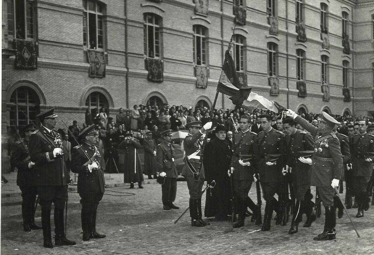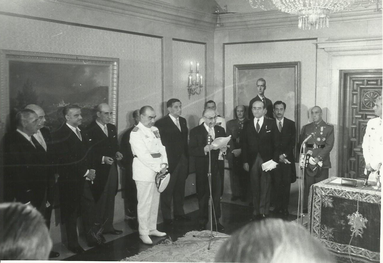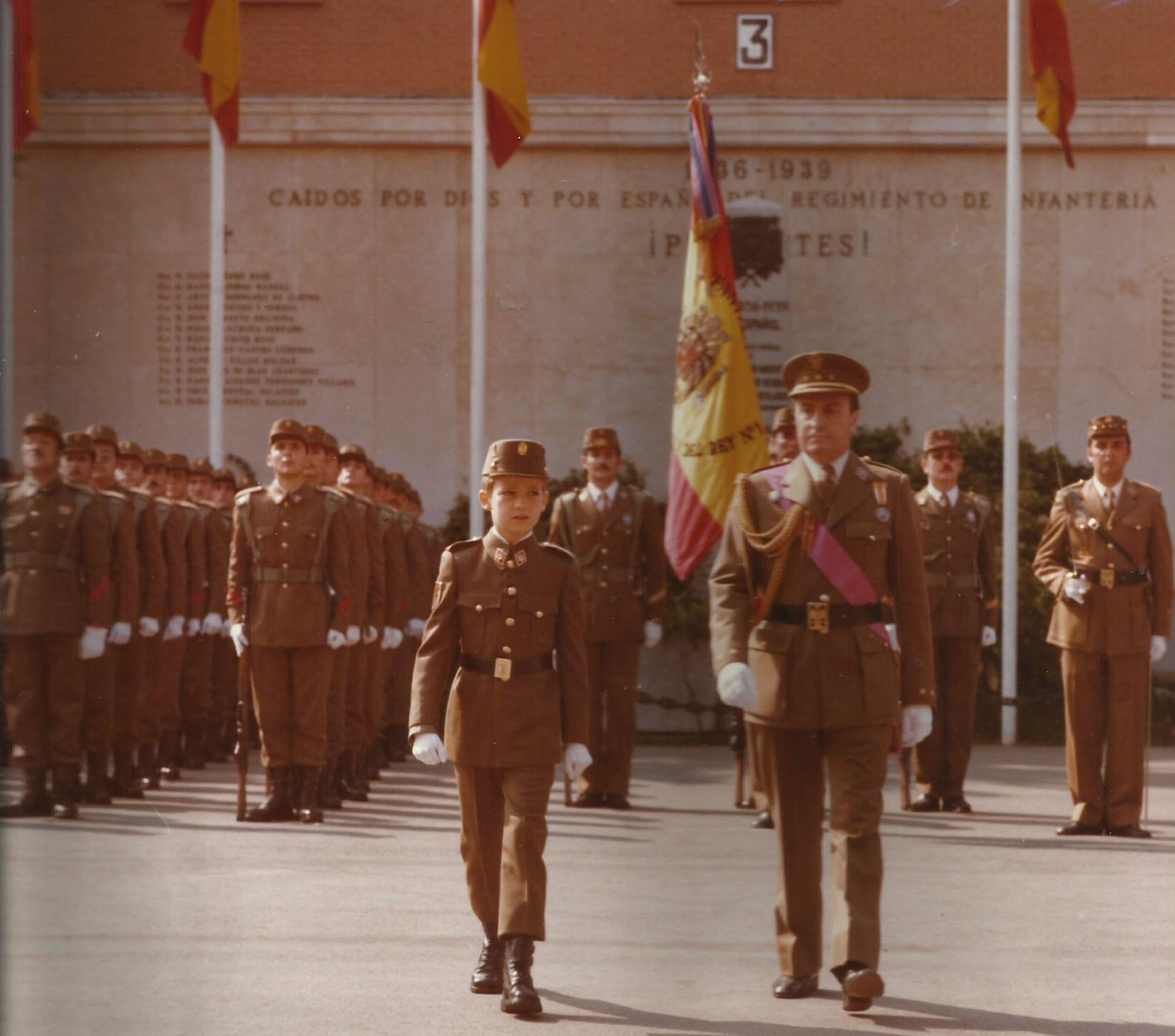 20.- El Príncipe de Asturias el día de su filiación saluda al Presidente del Gobierno Don Adolfo Suárez(al fondo y a la izquierda, el Jefe de la DAC «Brunete», Gal. Milans del Bosch).