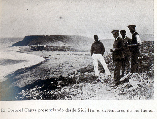 La ocupación, a cargo del Coronel Capaz, se produjo el 6 de abril de 1934 respondiendo al cumplimiento del Tratado de Wad-Ras de 1860; se llevó a cabo por la presión de Francia al convertirse Ifni en territorio base de los nacionalistas marroquíes. La zona del desembarco e inicial ocupación fue identificada como Santa Cruz de la Mar Pequeña, una pesquería utilizada por los canarios desde 1478 como punto de apoyo a sus pescadores y como base de partida para internarse en el interior y capturar esclavos. Lo primero que hizo Capaz al desembarcar fue izar la Bandera; en aquellos momentos era la republicana. Se arrió después de 35 años, el 30 de Junio de 1969. Como curiosidad Capaz, ya General en 1936, fue asesinado en una de las matanzas de la Cárcel Modelo de Madrid a pesar de que se mantuvo fiel a la República.