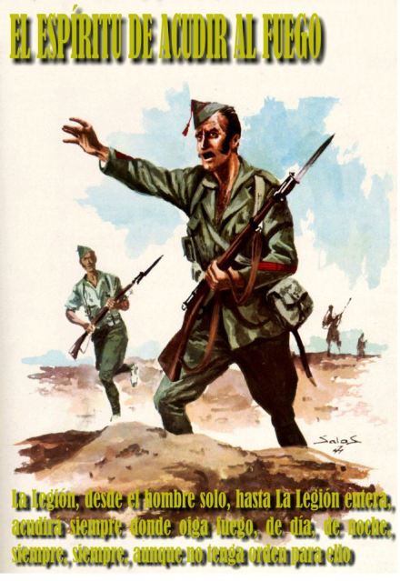 ‹‹La Legión, desde el hombre solo, hasta la Legión entera, acudirá siempre donde oiga fuego, de día, de noche, siempre, siempre, aunque no tenga orden para ello››