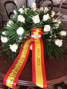 Un español anónimo, uno de los muchos españoles, que son legión, que aman a España porque la conocen, que sienten muy hondo lo bueno y lo malo, ha rendido homenaje público a nuestros héroes muertos en los sucesos de Annual. Solo, sin permiso de nadie, seguramente escandalizado, como este que escribe, por el olvido, se ha ido a una floristería y ha encargado una bella corona de flores, de rosas blancas, que lo dice todo: