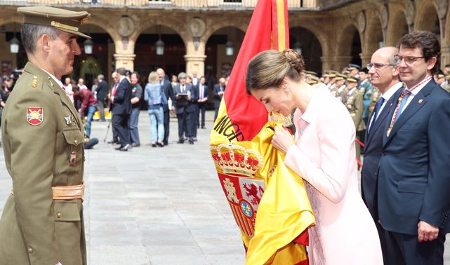 Su Majestad la Reina ha pronunciado unas profundas y bellas palabras en el madrinazgo del acto de entrega de una nueva Enseña Nacional al Regimiento de Especialidades de Ingenieros nº 11. Ha sido en Salamanca, pero su mensaje era para todos los soldados de España.