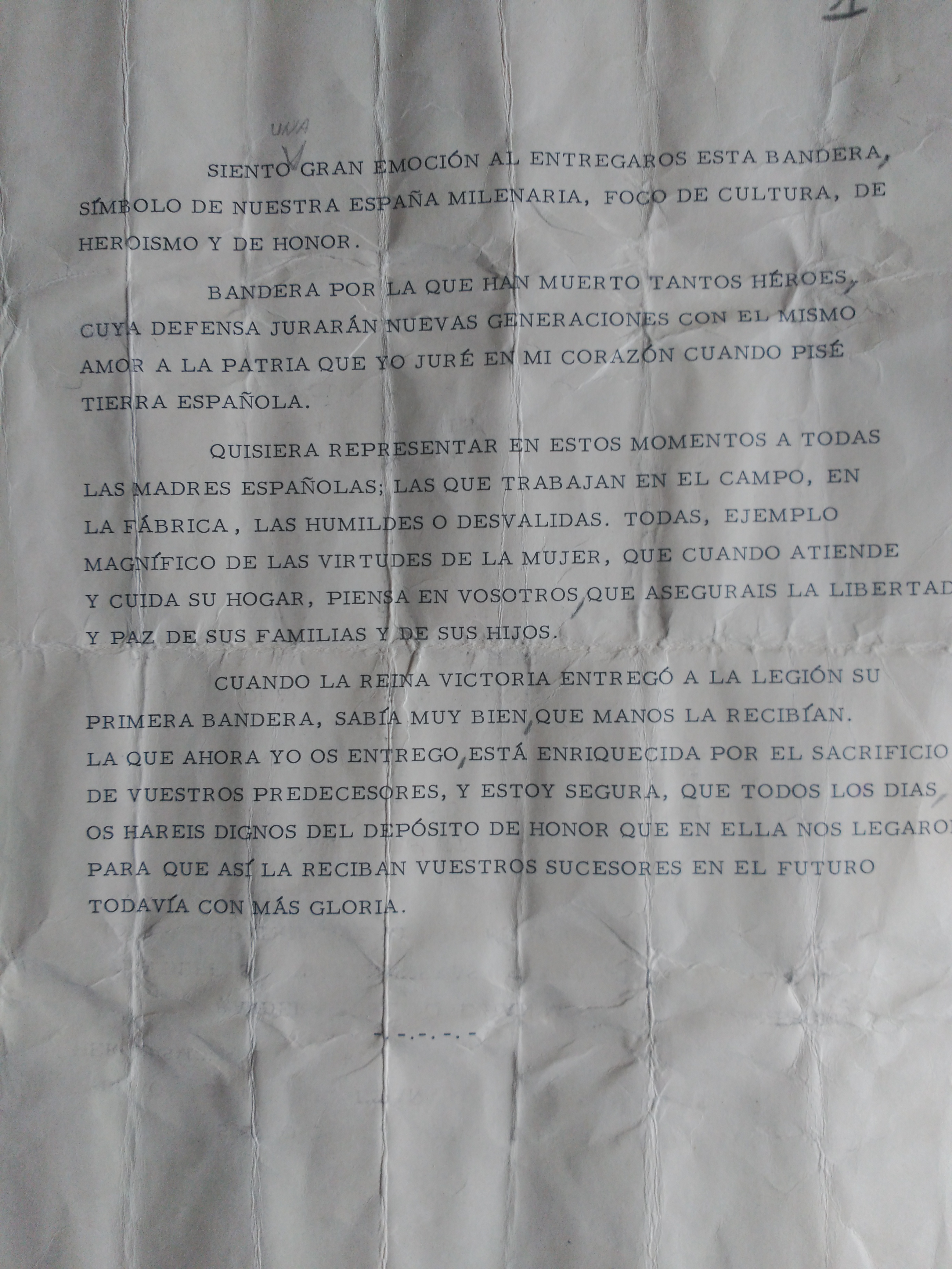 Original: Palabras de SM. la Reina Doña Sofía en la entrega de la Bandera al Tercio Duque de Alba (Ceuta-20.IX.1970)