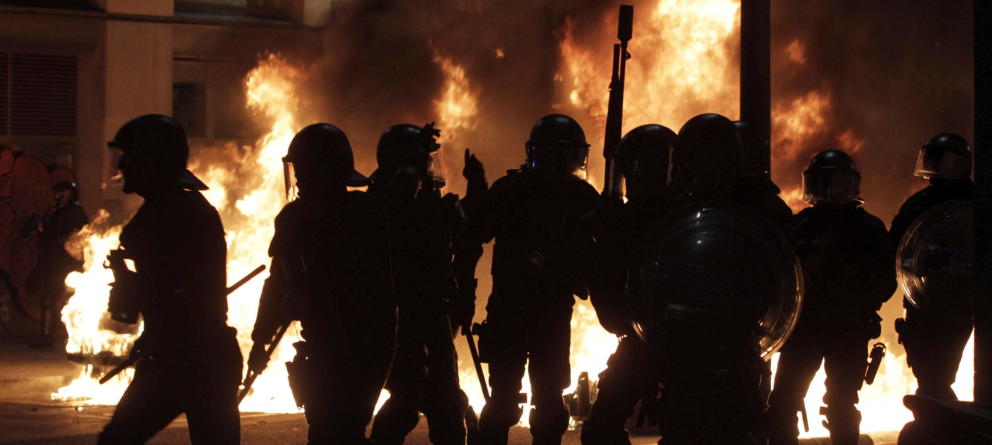 España arde, sufre un incendio enorme que asola muchos de nuestros rincones más queridos y ante la voz de ¡Fuego!, huyen despavoridos los bomberos; el agua de las mangueras aviva el fuego; es pura gasolina. Se queman las cosechas en los campos y el fuego busca asolar la identidad de sus habitantes.