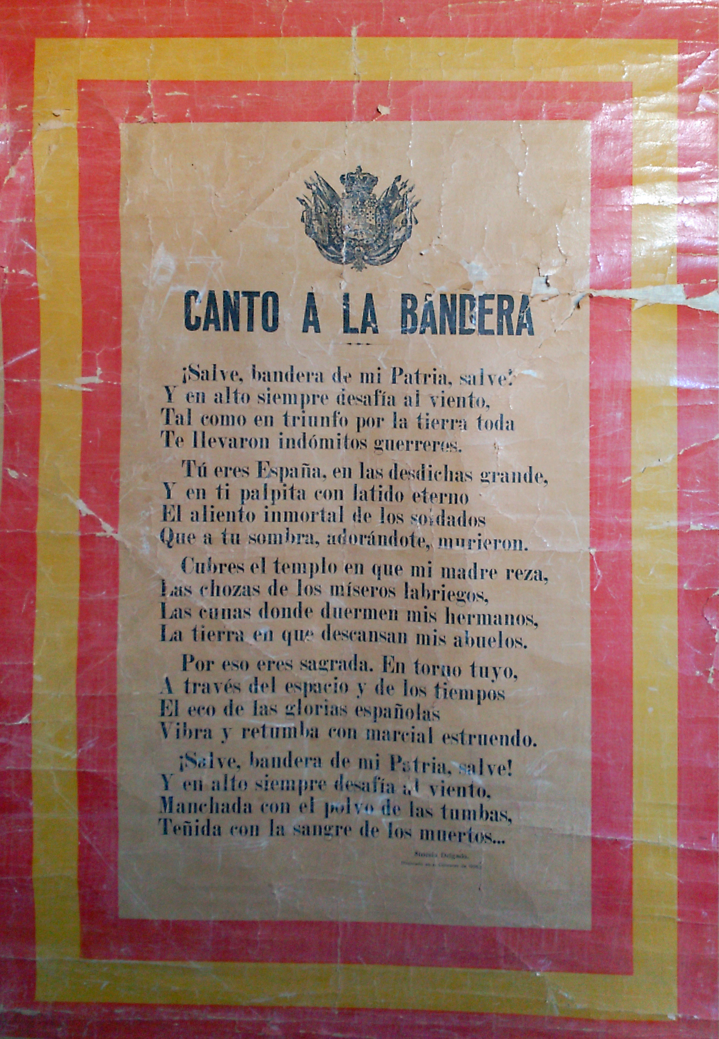 Creo no equivocarme, por no decir que estoy seguro, si afirmo que el contenido de este recitado de Sinesio Delgado, poniendo letra al compositor José Serrano, no la conoce ninguno de los que de forma vana, espuria u ofensiva, hacen uso del Símbolo de la Patria como si de una pancarta más se tratara y que enseñan u ocultan según conviene con la intención de atraer a unos o confundir a otros, es decir, engañar a todos.
