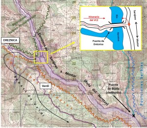 Los principales puentes que cruzaban el río Neretva habían sido volados. Los unos acusaban a los otros, el caso es que, para enlazar los destacamentos españoles en los alrededores de Mostar, con el avanzado de Jablanica, había que hacer un enorme desvío, un bypass a través de un polvoriento camino de montaña, que finalizaba con un fuerte descenso cerca de la localidad de Dréznica. Esto exigía de los conductores de BMR mucha pericia, combinando el freno cinemático con el mecánico, para no vaciar los calderines y asegurar una correcta frenada de las 13 toneladas que pesa el BMR en orden de combate con toda la tripulación.