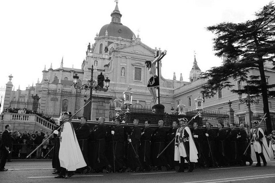 Cantan los legionarios, también la Armada española; todos están rezando, que los que ante nadie se humillan doblan a su Cristo la rodilla y le entregan el corazón.