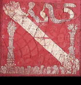 Este pendón “Fue utilizado por todos los monarcas de Castilla hasta Carlos I. Consistió, desde el reinado de Enrique IV, en una bandera de color rojizo, siendo probablemente púrpura escarlata, con una banda dorada engolada de cabezas de dragantes del mismo color.En sus inicios también los había con dragantes blancos con la banda negra.”