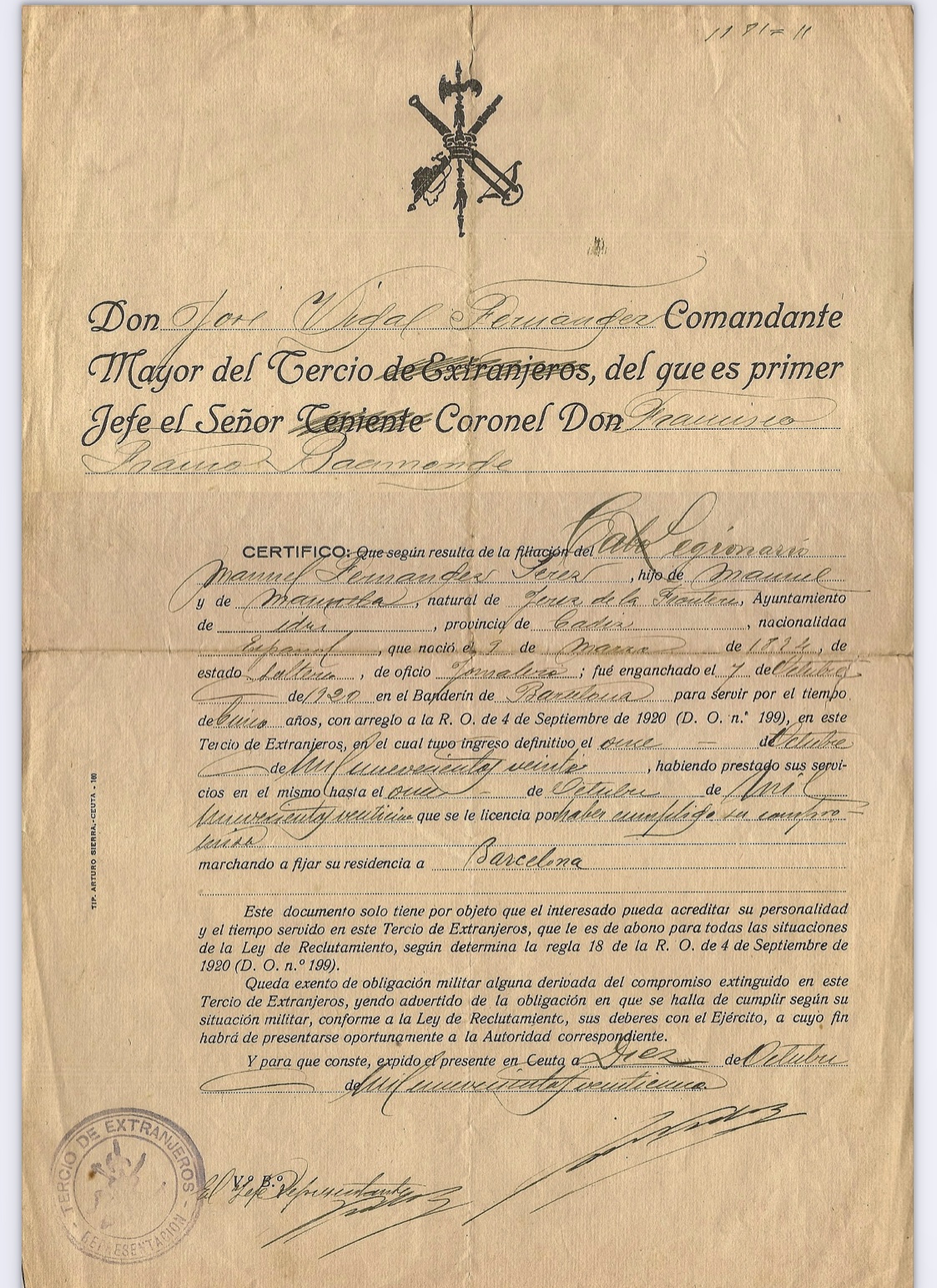 No se puede saber a ciencia cierta la época del legionario escribidor, ni en qué años estuvo en la Legión; que a lo peor ni estuvo y se lo han contado, porque sabe tanto que no se sabe si todo será suyo.