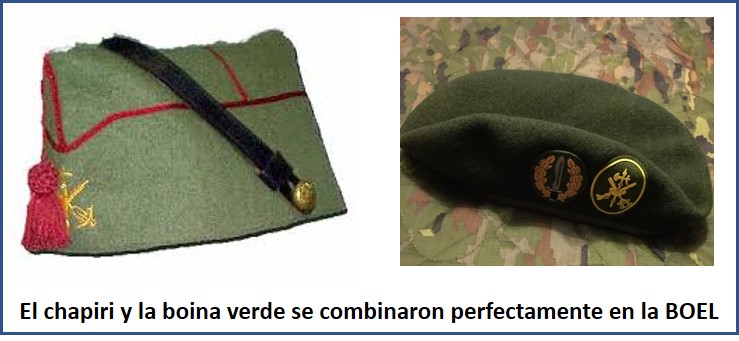 No fue sencillo, como vengo diciendo, pero a lo largo de su vida en la Legión, La BOEL supo encontrar su encaje. Siempre vistió el uniforme verde característico de la Legión, con su chapiri por supuesto, en guarnición y en las actividades legionarias. Y en las actividades propias de su especialidad operativa, las operaciones especiales, el uniforme mimetizado con la boina verde. “Al césar, lo que es del césar” venía simbólicamente a decir.