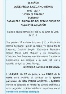 Hoy José Francisco Lazcano Remis, Josín el Trasgo, descansa en paz en el Cielo de los legionarios.