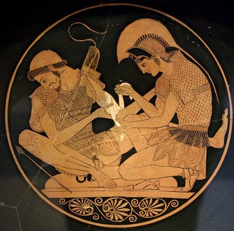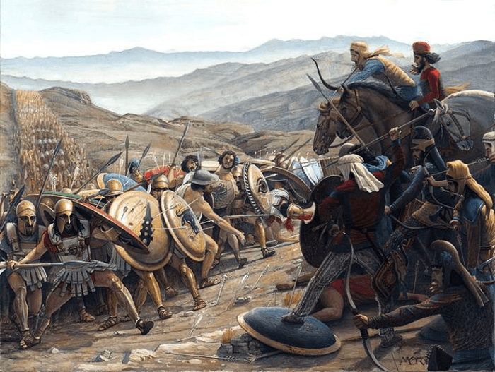 O Jenofonte: «Entonces Sotéridas de Sición replicó lo siguiente: No estamos en igualdad de condiciones, Jenofonte. Tú vas a caballo y yo estoy completamente destrozado a fuerza de llevar el escudo”.
