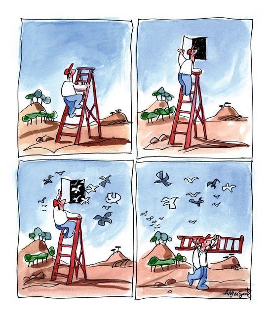 He asistido a una manifestación, una más, o menos, en la Plaza de Colón, en Madrid. He visto jóvenes, menos jóvenes, mayores, «muchas viejecitas vestidas de negro, con los cirios pálidos en las pálidas manos…». Hacía una mañana dulce y caía el sol de junio entre abanicos. En el fondo de un paisaje humano se esfumaba la silueta negruzca de lo que era España, que olvida el pasado. Había indignación profunda en el ambiente, un río de gente se deslizaba manso, claro, entre rojas y amarillas banderas.