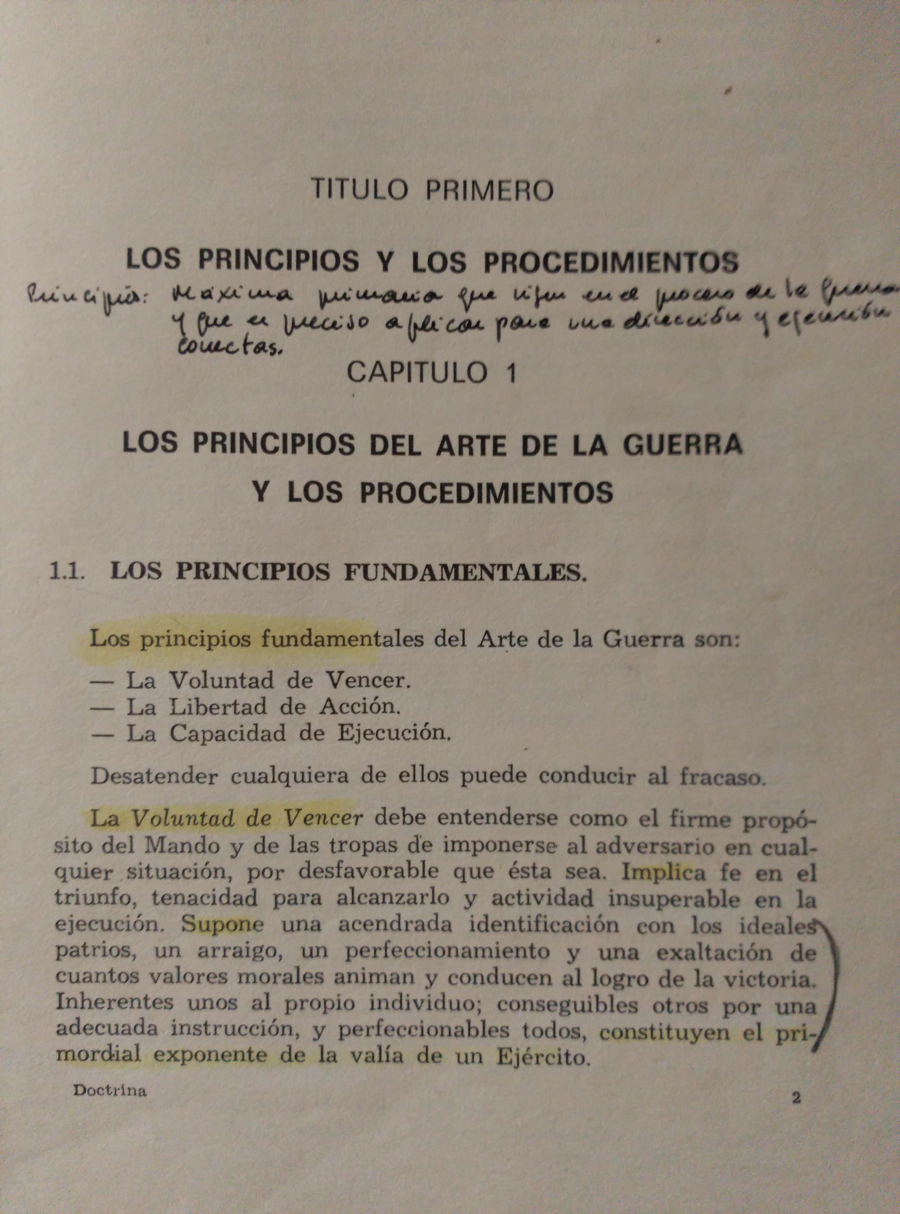 Los principios del Arte de la Guerra eran (?), la Voluntad de Vencer, la Libertad de Acción y la Capacidad de Ejecución. Desatender cualquiera de ellos puede conducir al fracaso. No son viejos